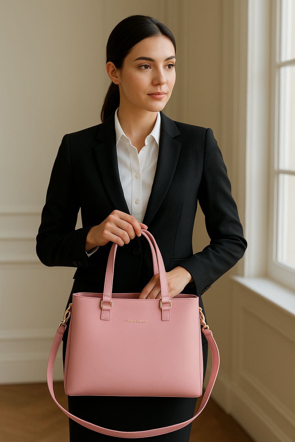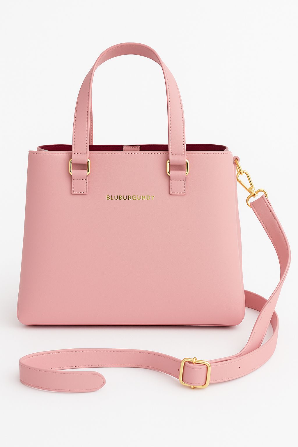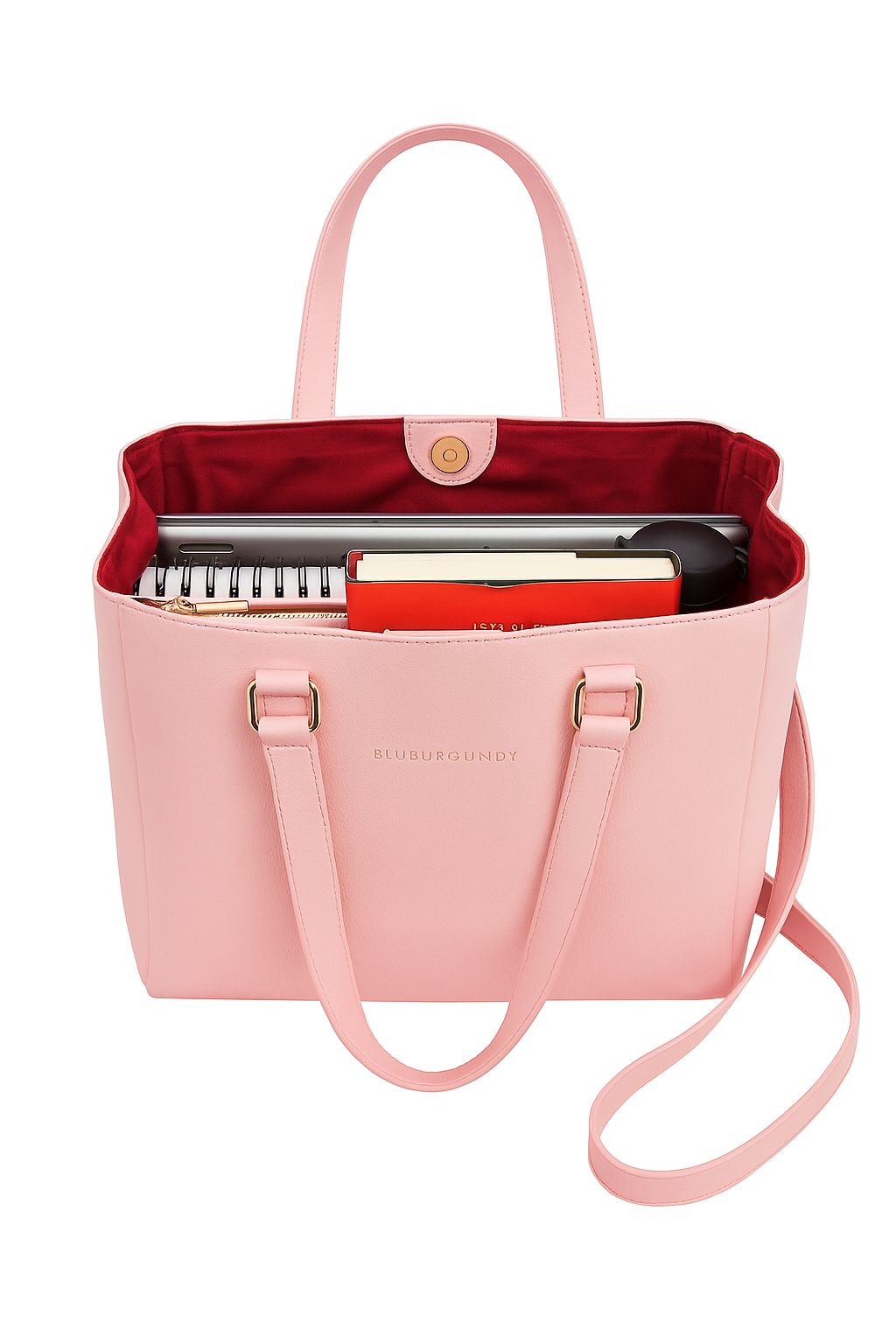• STYLISH DESIGN: Elegant pink handbag with gold-tone hardware accents and BLUBURGUNDY branding, perfect for a sophisticated professional look
